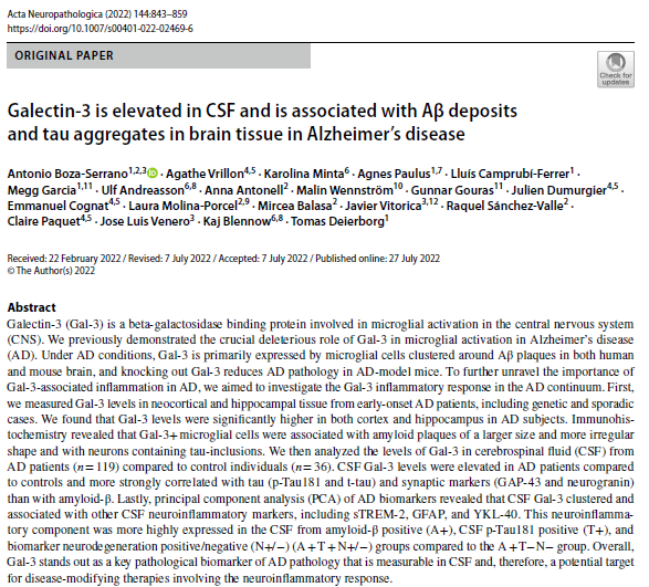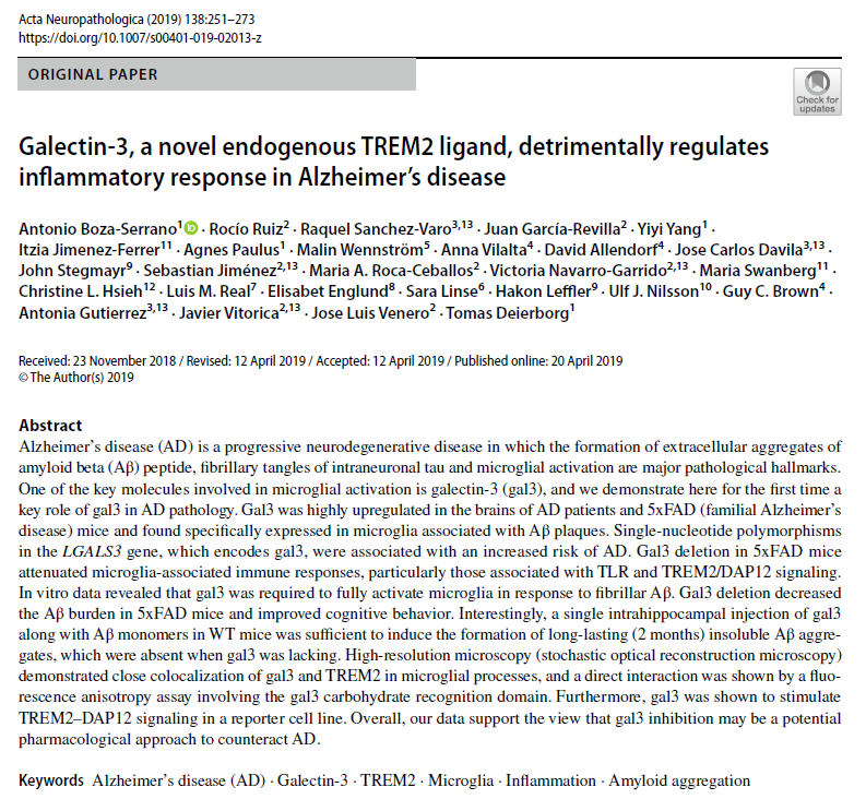 According to the latest research, Gal-3 acts as a TREM2-independent ligand and a primary regulator of this immune malfunction: