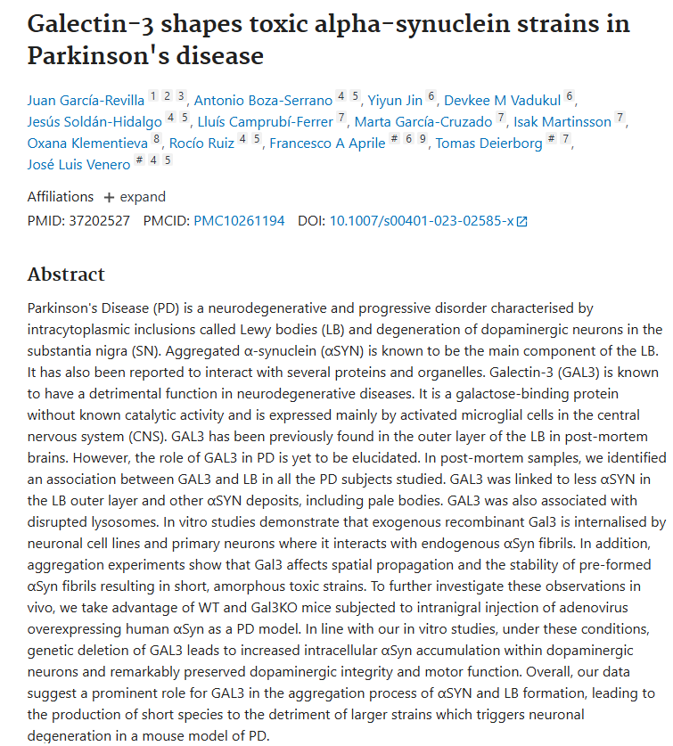 How Gal3 Accelerates Parkinson's Disease