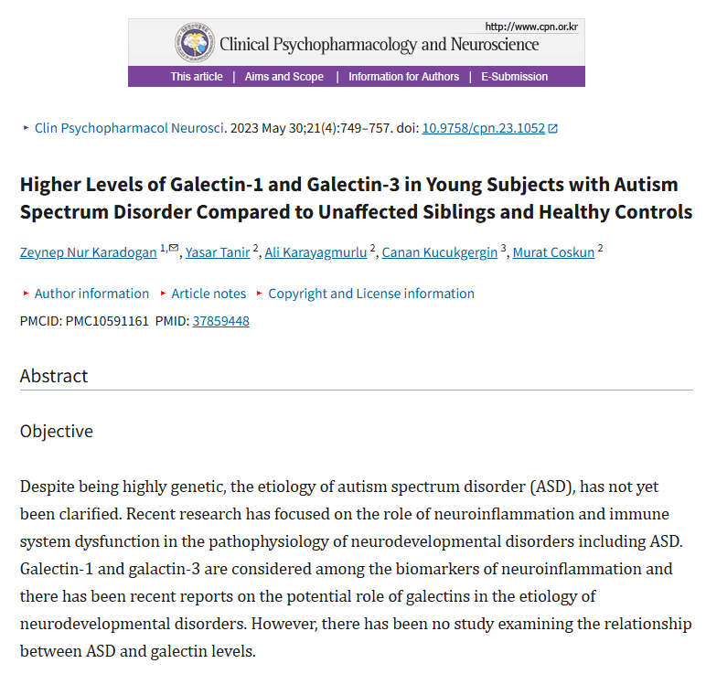 The Biomarker: In cross-sectional clinical studies, researchers discovered that school-aged children and young adults diagnosed with ASD have significantly elevated levels of Gal3 in their blood compared to their neurotypical siblings and healthy controls—in some studies, the Gal3 levels were nearly double.